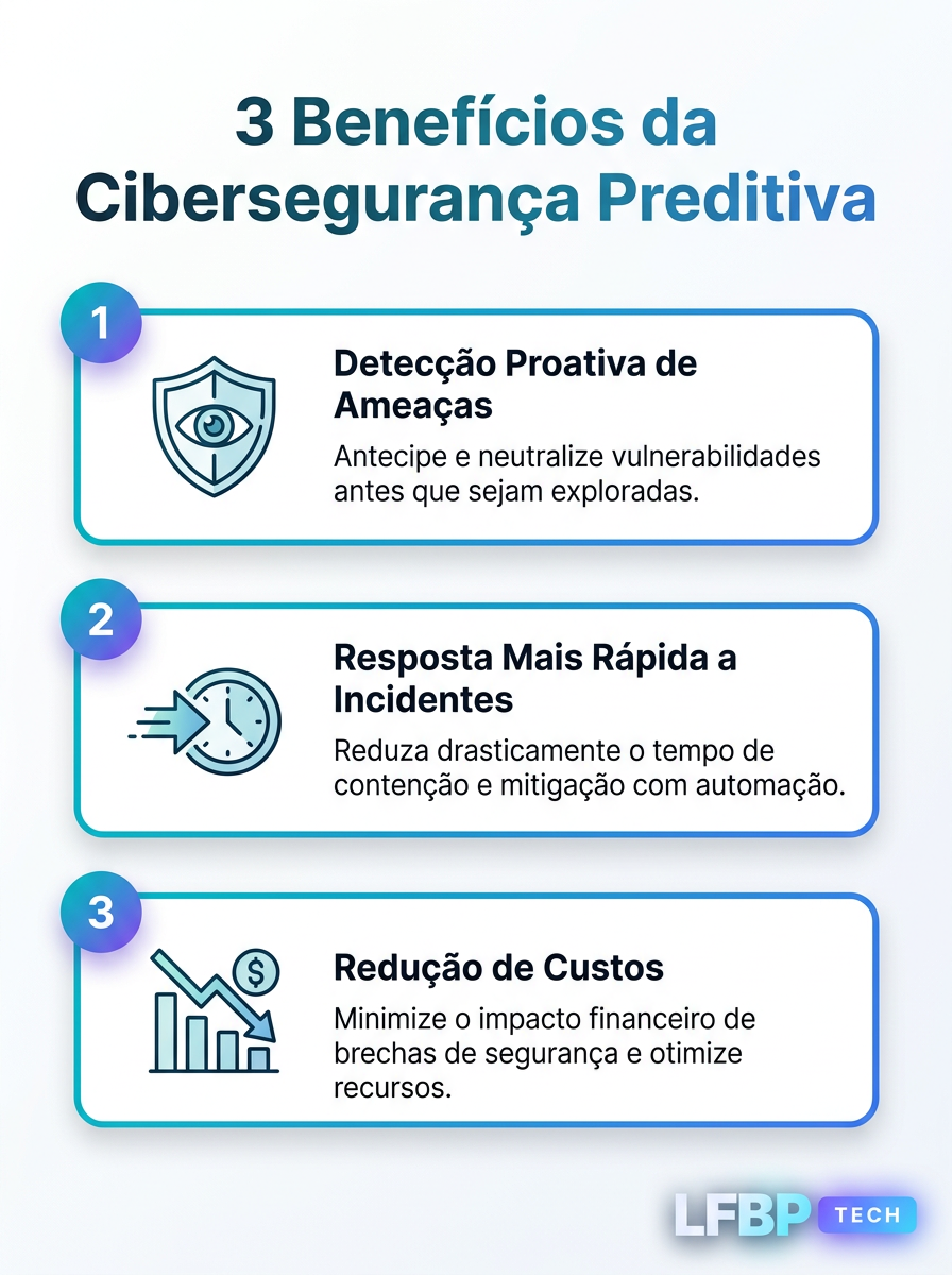 | O que define a cibersegurança preditiva? | É o uso de IA e análise de dados para identificar ameaças antes que elas sejam executadas, movendo o foco da resposta para a prevenção ativa. Saiba mais em IA parando ataques em tempo real. |